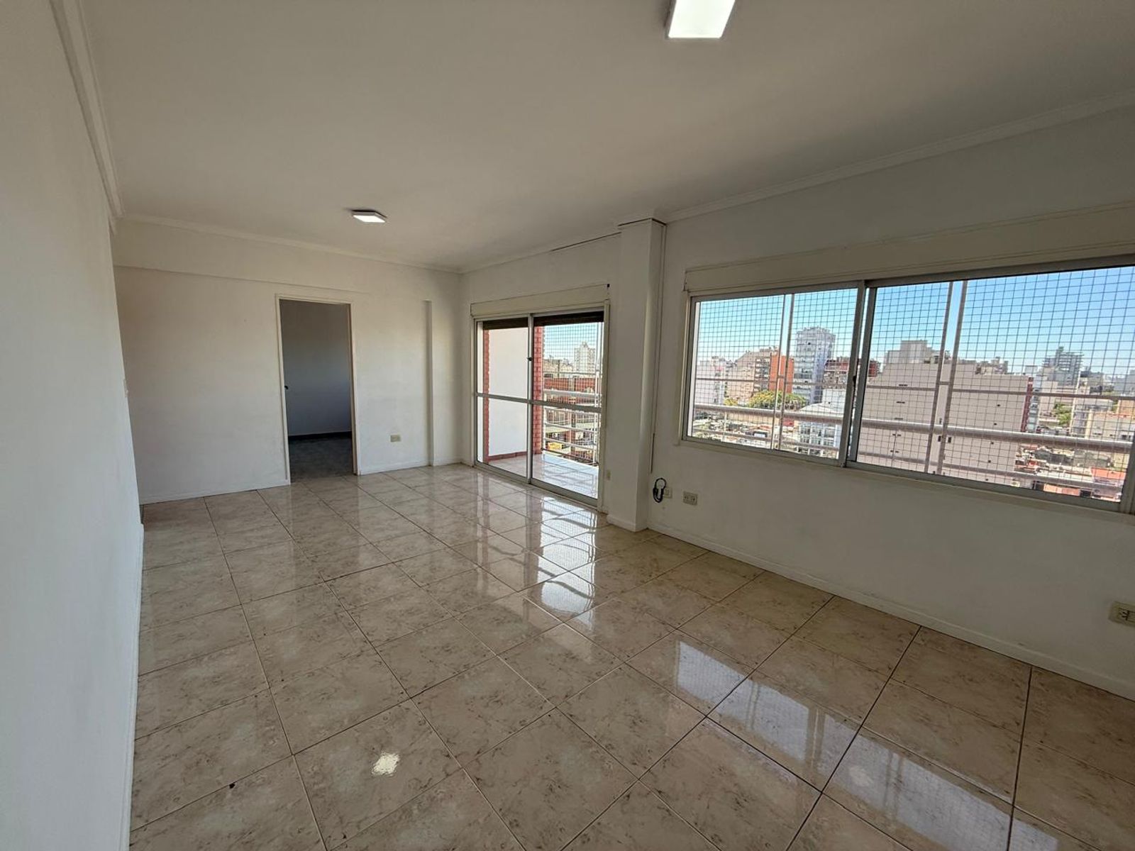 cerámicos, ventana y ventana balcón al frente, con cortinas de enrollar en